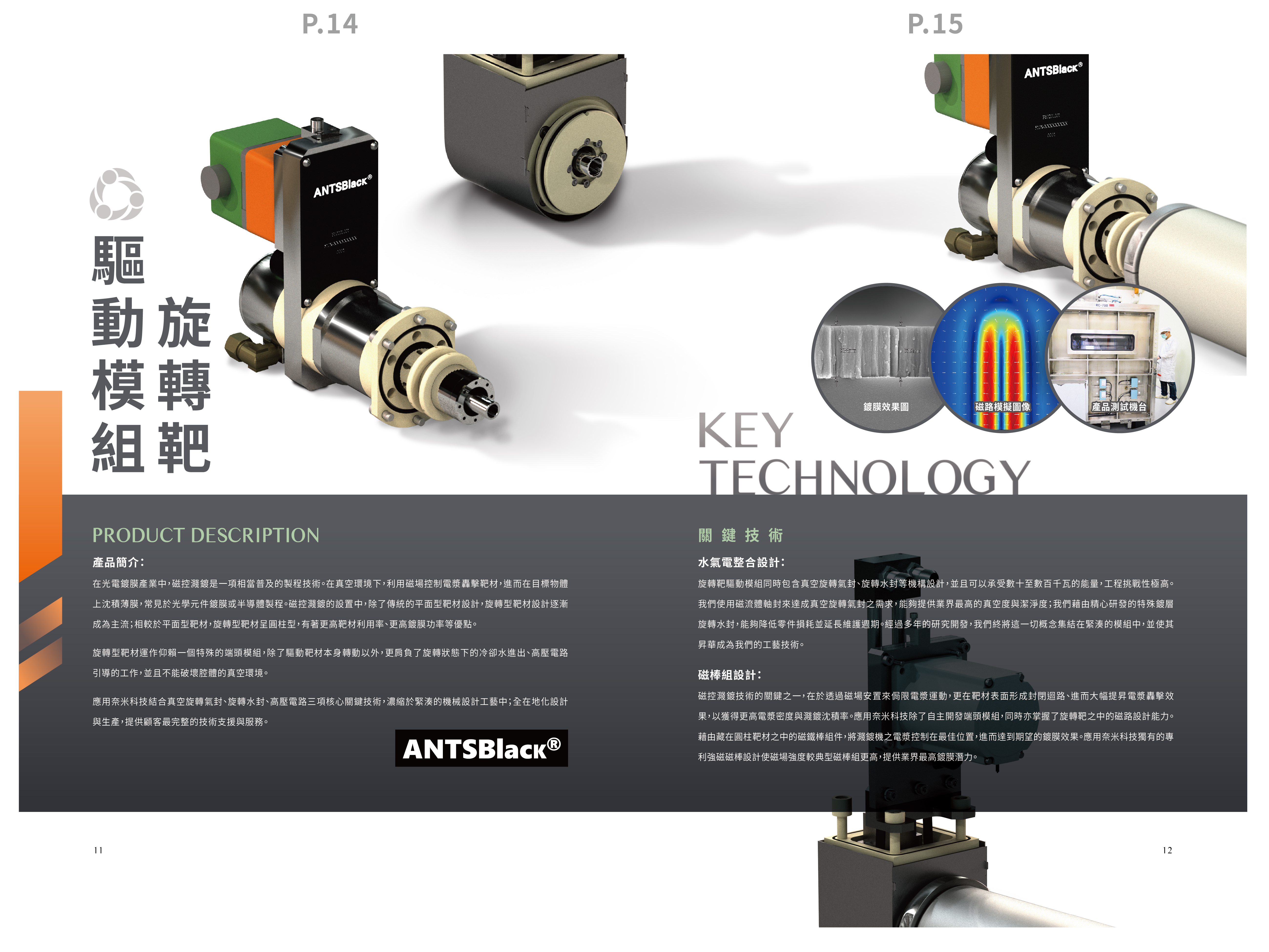 應用奈米科技股份有限公司(Applied Nano Technology Science, ANTS)致力於生產真空製程設備之特定部件,以及整合自動化及量測功能之電子設備,藉由自主的研發能量,為客戶提供技術、產品、與後勤服務。ANTS高精度產品,包含接觸角量測儀、磁流體軸封與旋轉陰極靶模組。從設計、製造、組裝到維護,ANTS擁有完整的知識技術後盾,可以根據客戶需求進行客製化服務。